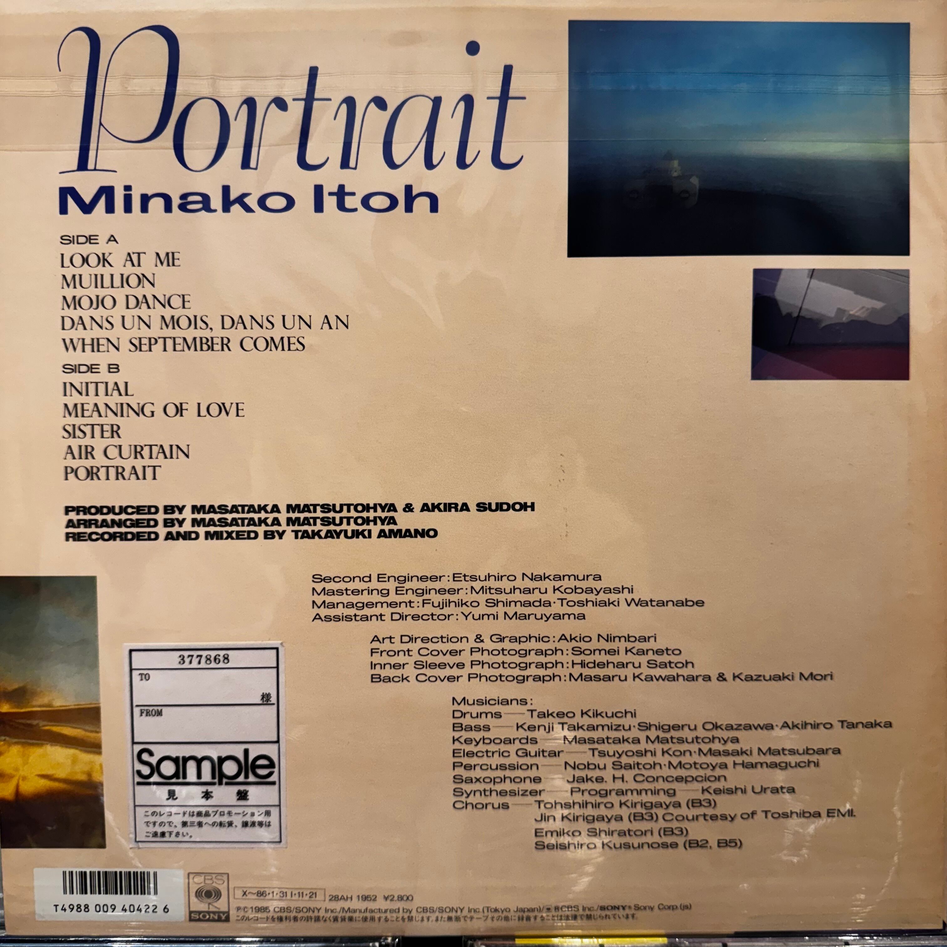 1985年リリース 見本盤オリジナル 自身の3rdアルバム 収録曲すべての作詞は伊藤自身による。作曲に楠瀬誠志郎や杉真理が参加。